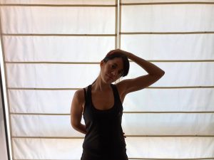 - Giramos la cabeza hacia la axila derecha y agarramos por la nuca. Al exhalar, intentamos acercar más la cabeza hacia la axila. Mantenemos un minuto.